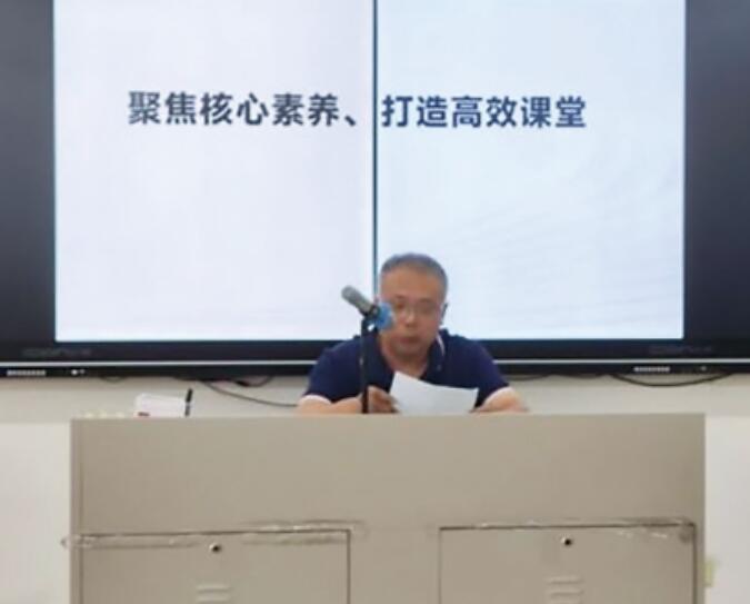 ②王新宇老师作了《聚焦核心素养、打造高效课堂》的交流。