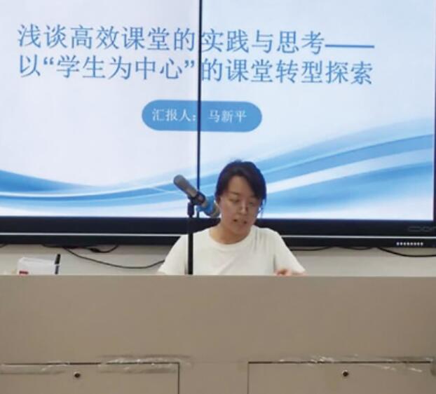 ④高一物理组马新平老师作了《浅谈高效课堂的实践与思考--以“学生为中心”的课堂转型探索》的汇报。