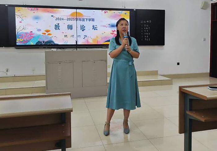2025年7月15日第七、八节课,在二楼多功能厅进行了本学期的教师论坛。论 坛由科研室江丽主任主持,侯旭校长、石立君书记、谢冬校长莅临了本次论坛。