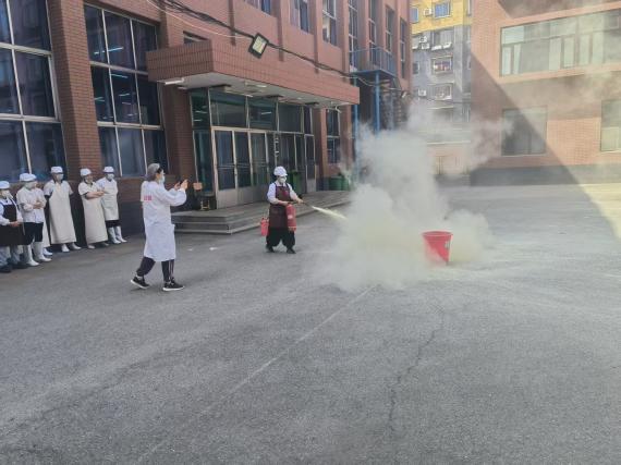 2025年5月23日,校领导责成安全处对校食堂员工和网格化管理人员进行疏散演练及消防器材使用培训
