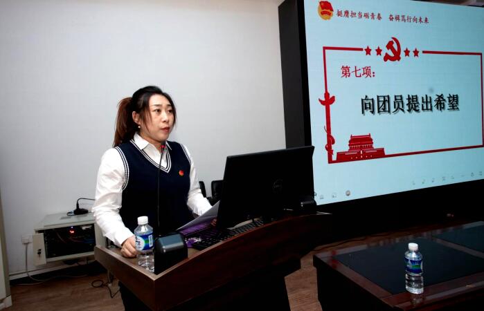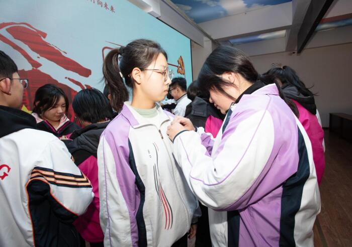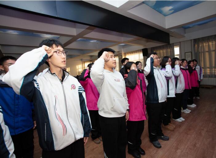 我校团委在学校礼堂隆重举行新团员入团宣誓仪式。在庄严的团歌声中,新团员精神饱满,面向鲜红的团旗,高举右拳,以铿锵有力之声庄严宣誓,铮铮誓言表达了新团员们坚定不移跟党走、为党和人民事业奋斗终身的坚定信念与决心。